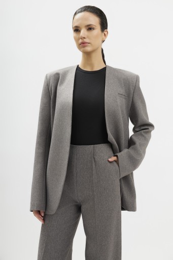 L’espoir’s signature relaxed tailoring is embodied in the minimalist Fia jacket, designed not just to make you look powerful, but to help you feel it. Crafted from soft, textured fabric, the Fia collarless neckline adds a bold, empowering touch. Pair it with the Kanita pencil skirt for a complete suit look. The model is wearing a size S.